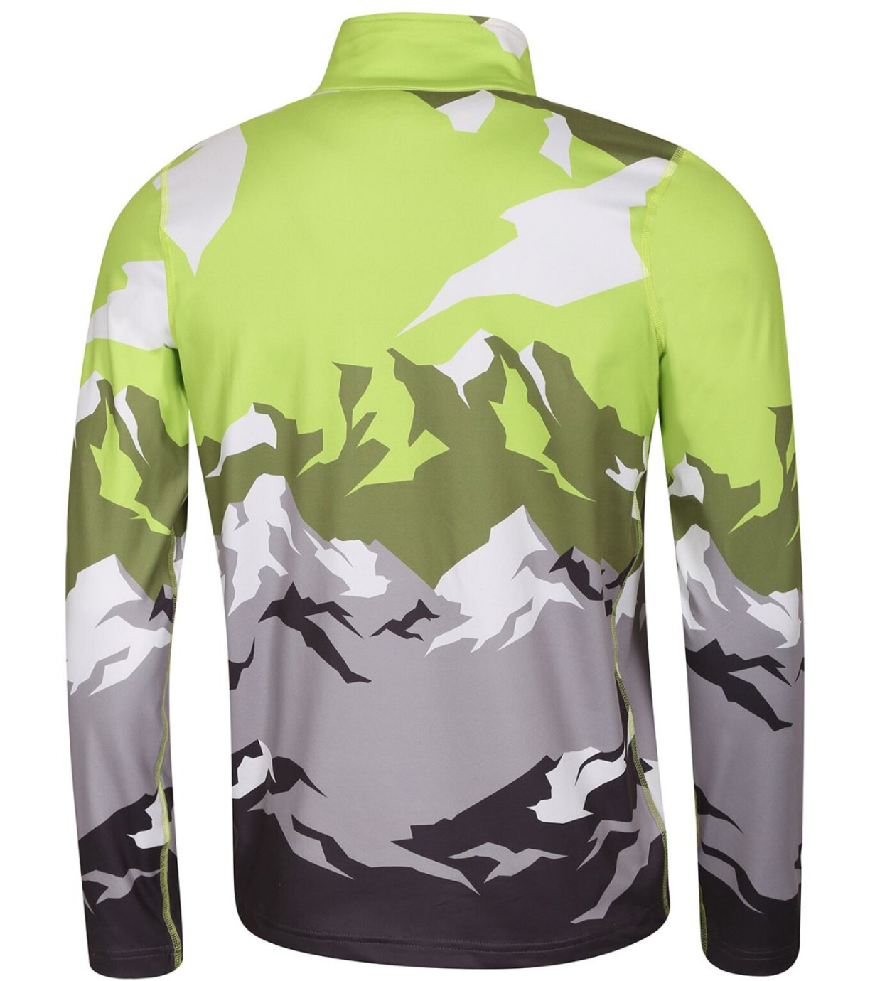 Męska funkcjonalna koszulka z długim rękawem została zaprojektowana tak, aby zapewnić maksymalny komfort nawet podczas intensywnych aktywności sportowych. Wykonana jest z lekkiego i elastycznego materiału z wysoką zawartością poliestru i elastanu, który jest paroprzepuszczalny, szybkoschnący i jednocześnie przyjemnie ciepły. Nadruk na całej powierzchni uzupełnia odblaskowy nadruk na stójce, który zwiększa widoczność i bezpieczeństwo podczas poruszania się w warunkach słabego oświetlenia. Dopasowany krój idealnie dopasowuje się do sylwetki, a dzięki płaskim szwom nie podrażnia skóry nawet przy długotrwałym noszeniu. Funkcjonalność i nowoczesny wygląd podkreśla krótki, kontrastowy zamek błyskawiczny, który umożliwia łatwą regulację wentylacji i jednocześnie nadaje koszulce sportowy charakter. Ten model to idealny wybór do biegania, jazdy na rowerze i innych aktywności na świeżym powietrzu w chłodniejsze dni.