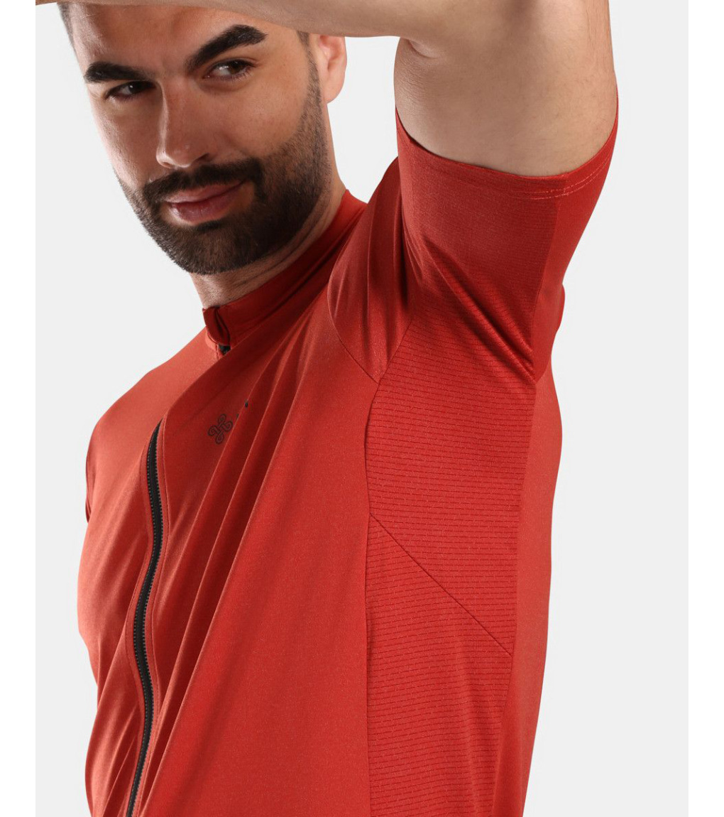 Męska koszulka kolarska z krótkim rękawem Kilpi CAVALET-M jest idealna do jazdy szosowej lub górskiej, dla osób jeżdżących rekreacyjnie lub hobbystycznie. Materiał chłodzący OPTI-DRY jest lekki, elastyczny i szybkoschnący. Siateczkowe wstawki pod pachami i po bokach poprawiają mikrowentylację. Niski kołnierzyk zakończony jest osłoną. Wyprofilowane części dopasowują się do kształtów ciała, doskonale je otulając, a płaskie szwy nie podrażniają skóry. Dół koszulki dzięki silikonowi nie podwija się podczas jazdy. Z tyłu znajduje się potrójna dzielona kieszeń. Nie zabrakło oczywiście elementów odblaskowych umieszczonych na plecach, bokach i rękawach. Kilpi CAVALET-M dostępny w wersji jednokolorowej.