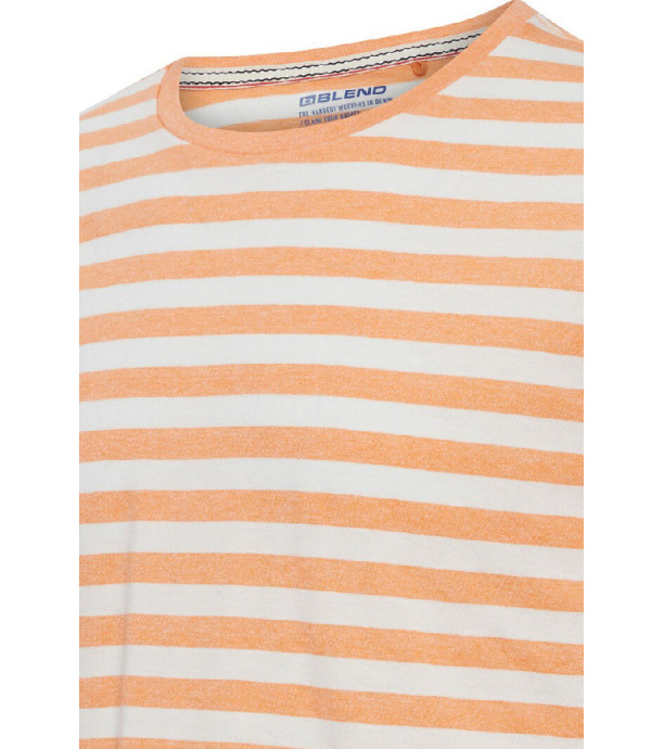 Koszulka z krótkim rękawem Blend ma okrągły dekolt i oryginalny, wyszukany wzór w paski. Koszulka wykonana jest z miękkiego i wygodnego materiału. Model jest wygodny i idealny do noszenia na co dzień.