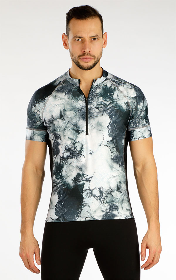 Męski t-shirt kolarski zapinany na suwak przy szyi i z kieszenią z tyłu. Połączenie druku i czerni. Odblaskowe płaskie szwy i elementy zapewniające lepszą widoczność i bezpieczeństwo. Guma antypoślizgowa na całej długości koszulki. Materiał jest elastyczny, szybko schnie i zapewnia maksymalny komfort noszenia.
