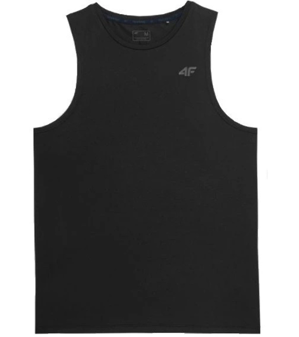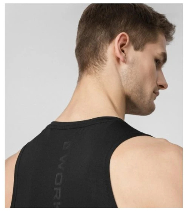 Męski top 4F wykonany z materiału szybkoschnącego. Tył koszulki ozdobiony jest napisem.