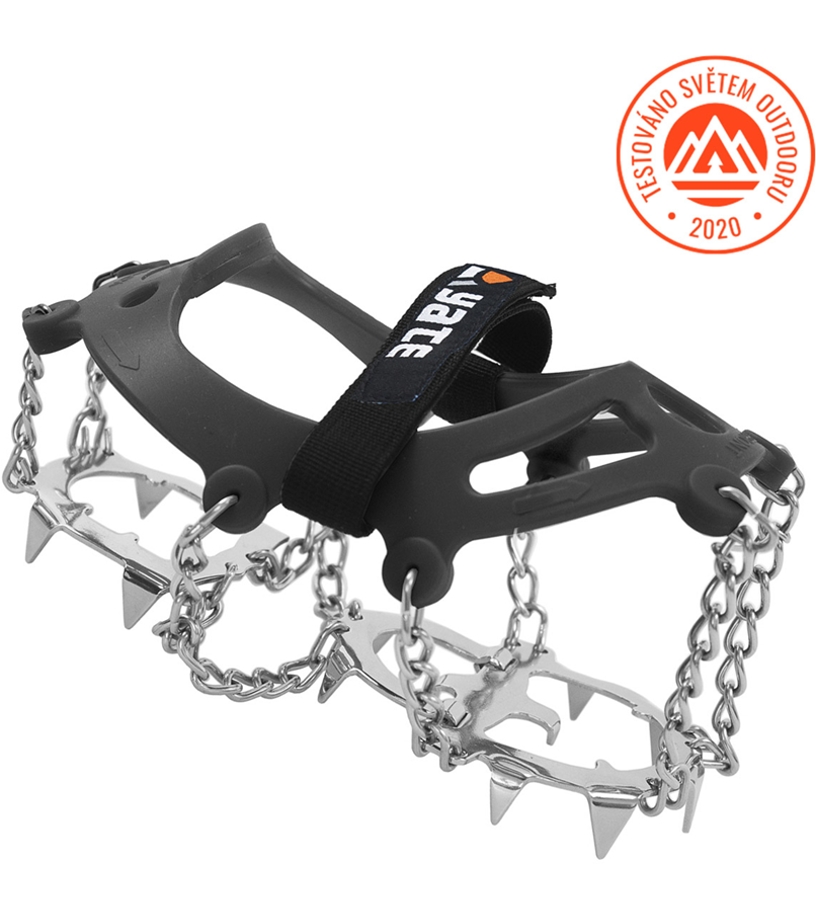 Raczki łańcuchowe YATE ICE SPIKES z długimi stalowymi kolcami ułatwiają chodzenie i bieganie po śniegu, lodzie i trudnym terenie z ryzykiem poślizgnięcia się. Raki zapewniają stabilność i bezpieczeństwo w terenie, gdzie istnieje ryzyko poślizgu. Nie zastępują raków, ale pełnią podobną rolę. Długość kolców wynosi 14 mm, dzięki czemu raczki umożliwiają wygodne chodzenie nawet w głębszym śniegu bez niebezpieczeństwa zatkania kolców śniegiem. Raczki to bardzo popularne narzędzie outdoorowe dla wszystkich, którzy wybierają się na wędrówki od jesieni do wiosny, gdy nocne przymrozki sprawiają, że drogi stają się niebezpiecznie śliskie, a resztki pokrywy śnieżnej lub lodu przeplatają się ze ścieżką. Są doskonałym dodatkiem dla sportowców, którzy chodzą lub biegają w różnych rodzajach terenu przez cały rok, ale także dla myśliwych-drwali i każdego, kto pracuje na łonie natury przy niemal każdej pogodzie. Raczki są łatwe i szybkie w zakładaniu, a dzięki bardzo elastycznemu obszyciu idealnie dopasowują się do każdego rodzaju obuwia, od lekkich butów do biegania po buty trekkingowe. Wybierając rozmiar pamiętaj, że zimowe buty trekkingowe są większe niż buty do biegania. Wysokiej jakości stalowe kolce o długości 17 mm na czubku i 14 mm na pięcie, stalowe łańcuszki mają przyspawane oczka w najbardziej obciążonych miejscach, elastyczny pasek pozostaje elastyczny nawet w ekstremalnie niskich temperaturach, założenie na buty zajmuje kilka sekund, nadają się do wszystkich rodzajów butów, dostarczane w praktycznej torbie na suwak, łatwa konserwacja .