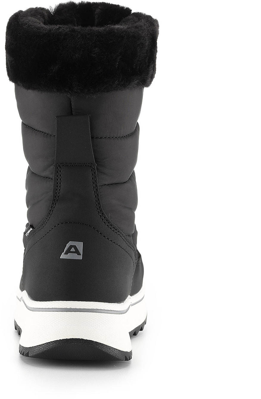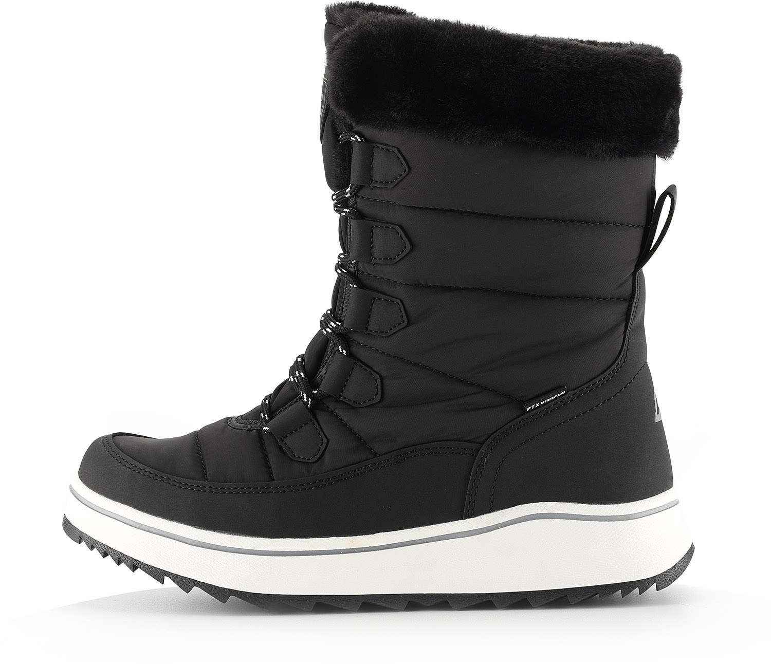 Damskie buty zimowe łączą w cholewce materiał syntetyczny i materiał tekstylny, co zapewnia trwałość i komfort noszenia. Dzięki specjalnej obróbce materiału z membraną PTX buty są oddychające i jednocześnie chronią przed wilgocią, dzięki czemu stopy pozostają suche nawet w niesprzyjającą pogodę. Wewnątrz znajduje się ocieplana, tekstylna podszewka, która zapewnia przyjemne ciepło i komfort w chłodne dni.
