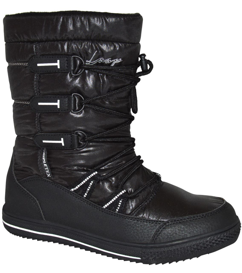 Damskie buty Joss nadają się na bardziej wymagające wyprawy w zimne dni. Zapewniają wsparcie, ciepło i komfort. Podstawę butów stanowi poliuretan oraz woskowany nylon, który jest materiałem wytrzymałym, łatwym do prania i, co najważniejsze, praktycznym. Podszewka wykonana jest z polaru. Dzięki temu buty będą miały idealne właściwości na zimną pogodę. Całość wspiera wysokiej jakości podeszwa TPR. Zastosowana technologia Tripletex zapobiega przedostawaniu się wody do środka buta i pozwala mu oddychać.