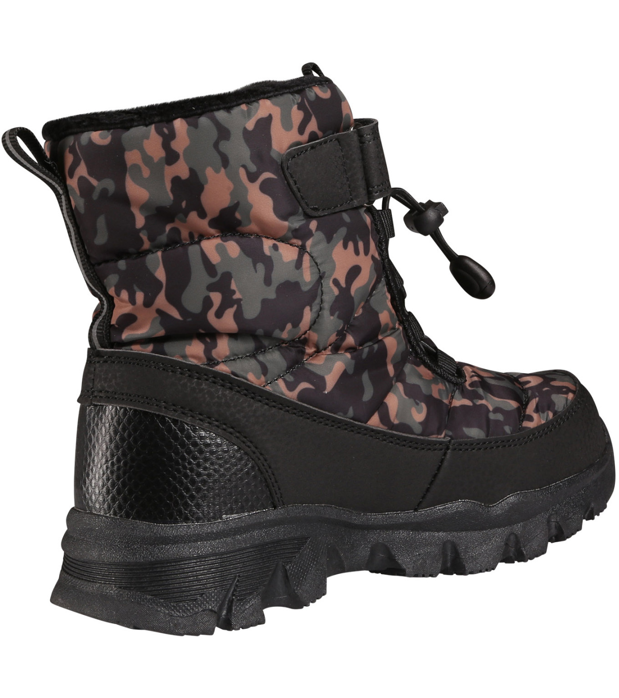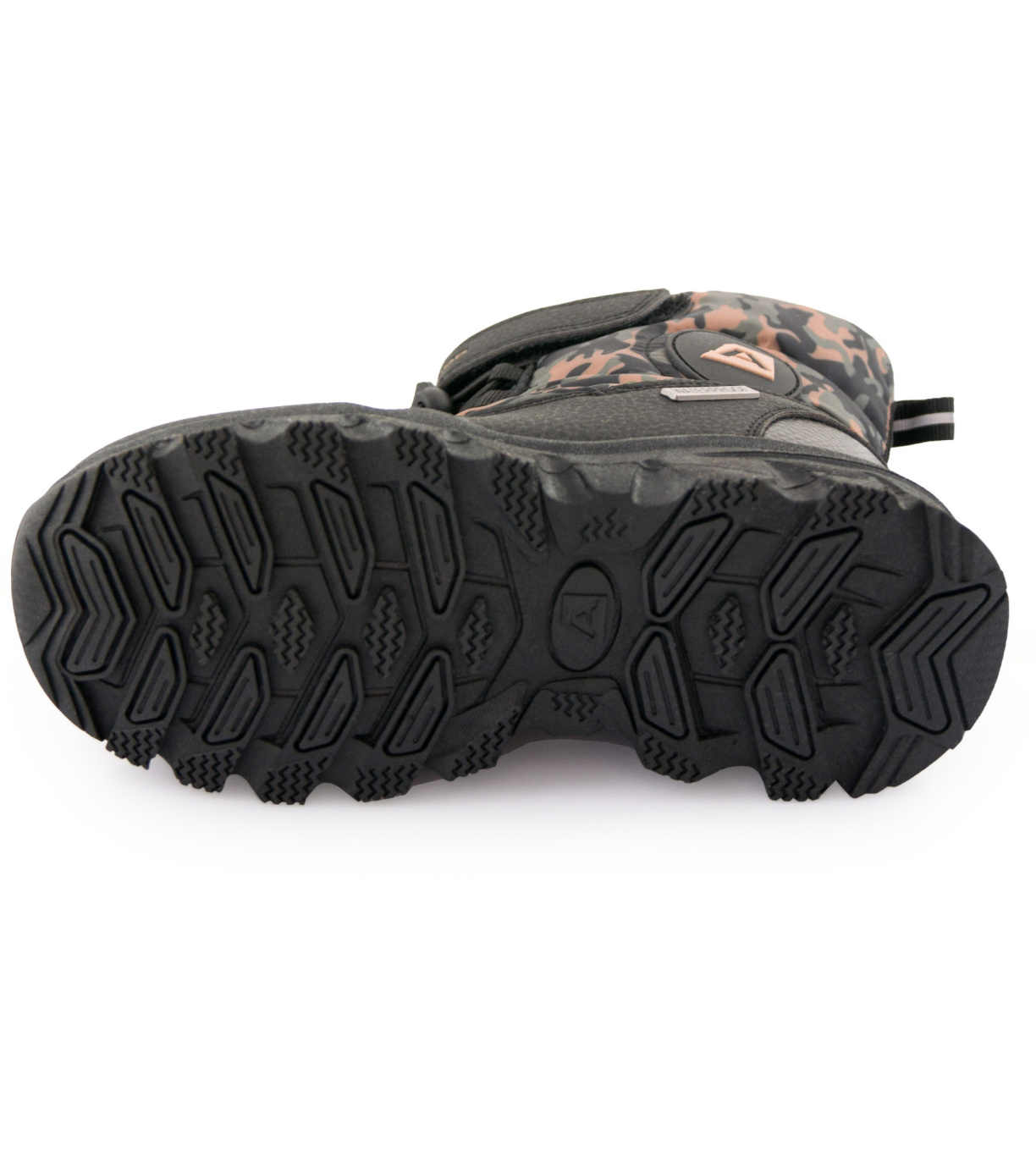 Dziecięce buty zimowe wykonane są z wodoodpornego, wiatroszczelnego i wytrzymałego materiału z ochronną impregnacją, która sprawi, że dziecięce stopy będą suche i ciepłe nawet w trudnych zimowych warunkach. Zadrukowana powierzchnia butów jest charakterystyczna i łatwa w utrzymaniu. Wewnętrzna część butów wyposażona jest w miękką i ciepłą wyściółkę, która niezawodnie chroni przed zimnem. Zapinanie butów zapewnione jest dzięki połączeniu sznurówek ze stoperem i jednego rzepa, co pozwala na łatwe i pewne zapięcie. Dla większego bezpieczeństwa buty mają elementy odblaskowe, które poprawiają widoczność dzieci w warunkach słabego oświetlenia. Wytrzymała podeszwa TPR zapewnia doskonałą przyczepność i odporność na przetarcia, co gwarantuje długą żywotność butów.