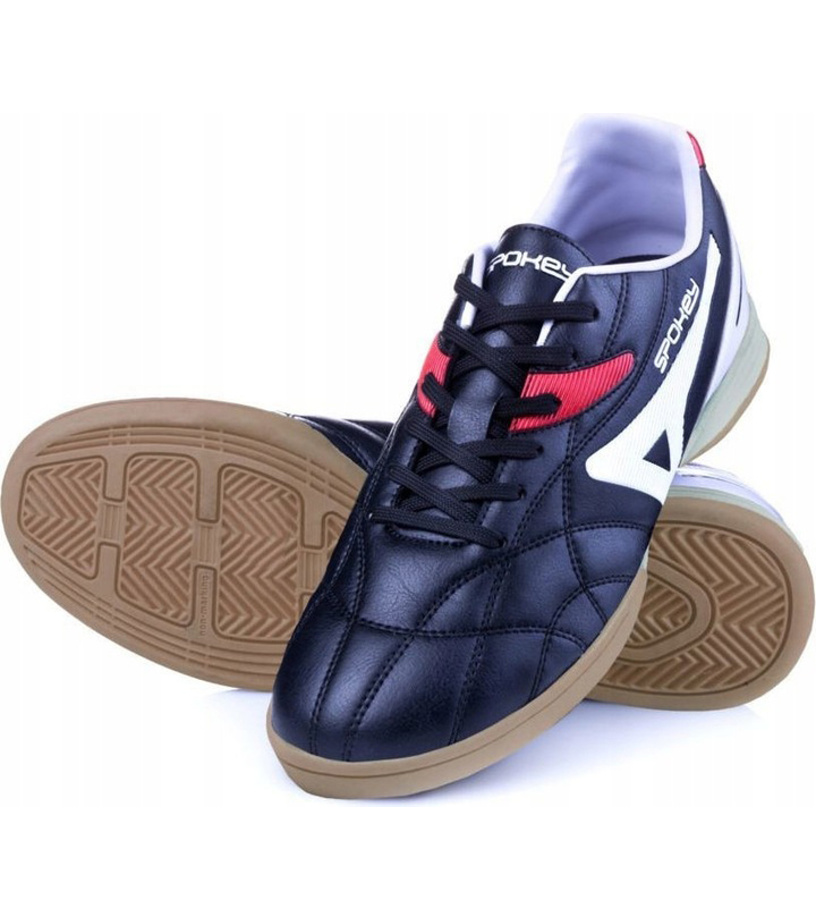 Dziecięce buty sportowe, tzw. halówki, marki Spokey. Przeznaczone są dla dzieci i nastolatków, którzy zaczynają grać w piłkę nożną. Mają niebrudzącą, elastyczną podeszwę, która gwarantuje doskonałą przyczepność podczas gry na parkiecie, gumie i nawierzchniach gumowych. Cholewka wykonana jest z lekkiej, wygodnej skóry syntetycznej, która umożliwia doskonałe czucie piłki. Kształt wkładki EVA z wykończeniem tekstylnym zapewnia najwyższy poziom komfortu.