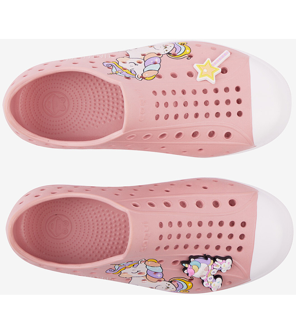 Tenisówki dziecięce Star wyróżniają się wszechstronnością zastosowania. Na plac zabaw, do przedszkola czy nad wodę? Dzięki antybakteryjnemu, antypoślizgowemu materiałowi stopa dziecka będzie będzie przez cały czas w komforcie. Wkładka nie jest częścią pary, można ją dokupić dodatkowo. Możliwość wstawienia ozdobnych amuletów.