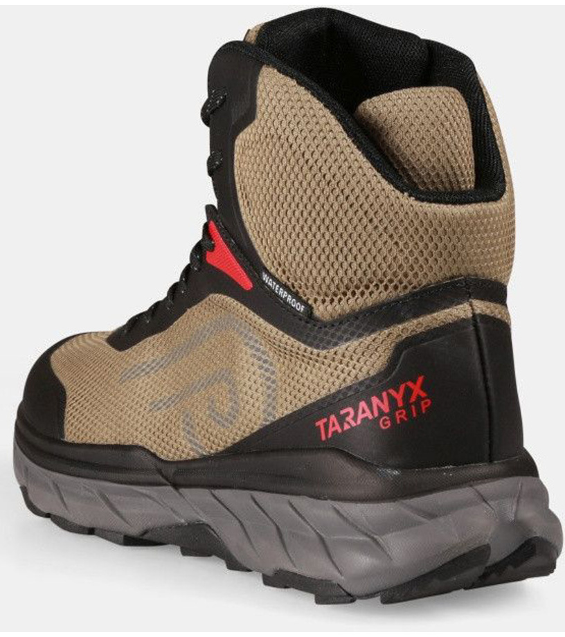 Podeszwa zewnętrzna TARANYX GRIP do biegów górskich została zaprojektowana z myślą o zapewnieniu maksymalnej przyczepności na naturalnych nawierzchniach. Ta innowacyjna podeszwa zewnętrzna idealnie sprawdza się w terenie mieszanym, pozwalając biegaczom pewnie pokonywać każdą nawierzchnię. Specjalnie opracowana mieszanka materiałów nie tylko zwiększa przyczepność, ale także znacznie zmniejsza zużycie, zapewniając: długą żywotność i niezawodne działanie. TARANYX GRIP to synonim: bezpieczeństwa, wydajności i trwałości. Zapewnia biegaczom pewność i stabilność na każdym kroku w trudnym terenie.