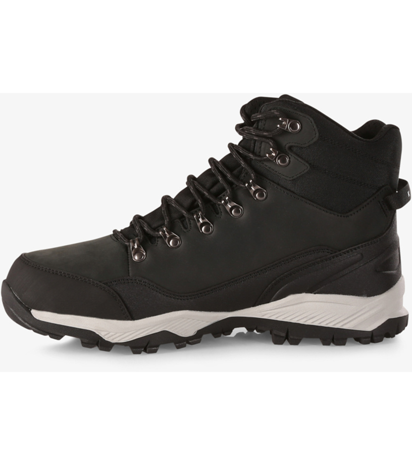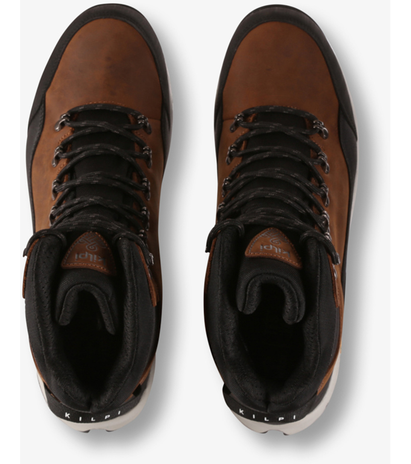 Buty trekkingowe Kilpi TRACKER HIGH WP-U z cholewką sięgającą ponad kostkę zapewnią Ci niezbędne wsparcie i komfort w każdym terenie. Cholewka wykonana z gładkiej skóry nubukowej w połączeniu z mocnym nylonem balistycznym jest niezwykle odporna na przetarcia i obciążenia. Dzięki wewnętrznej membranie są niezawodnie odporne na śnieg, deszcz i kałuże. Wkładka bez ocieplenia nadaje się do całorocznego użytkowania i zapewnia stopom niezbędną oddychalność. Aby zwiększyć oddychalność, wysoki, miękko wyściełany język i ściągacz przy kostce podszyto wytrzymałą siateczką. Miękka, wyjmowana wkładka redukuje nacisk, wstrząsy i nierówny teren. Amortyzowana gumowa podeszwa ze strukturalnym wzorem marki VIBRAM zapewni Ci oczekiwaną stabilność i pewność na śliskich lub kamienistych nawierzchniach. Gumowa podeszwa zewnętrzna i stabilizator pięty zapewniają ochronę i stabilność. Wysokie sznurowanie wykonane z nylonowych sznurówek, przeciągniętych przez stalowe przelotki, mocno trzyma but na stopie. Uniwersalny krój pasuje zarówno do stóp kobiet, jak i mężczyzn, a uniwersalny, czarno-brązowy kolor pasuje do każdej stylizacji. Nie będziesz w stanie oprzeć się butom Kilpi TRACKER HIGH WP-U, o które tak łatwo dbać.