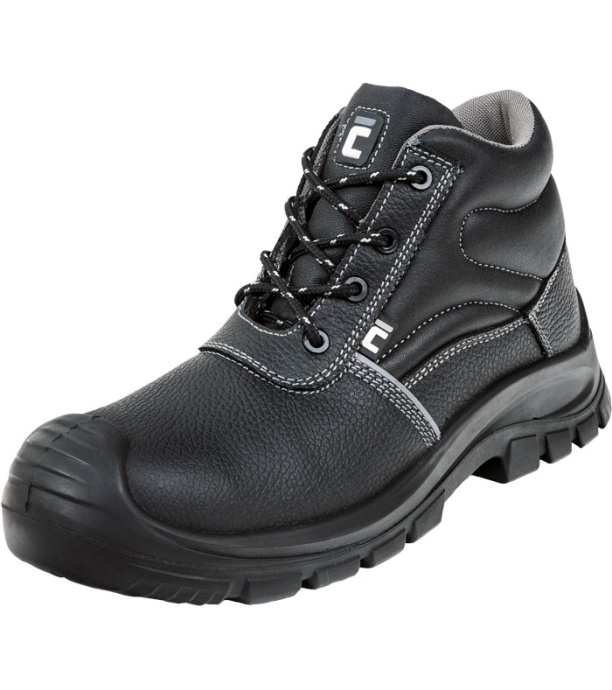 Opis: Skórzane trzewiki ochronne z niemetalowym podnoskiem i kompozytową wkładką chroniącą przed przebiciem. Paliwo- i olejoodporna podeszwa PU/PU. Obuwie nie zawiera elementów metalowych.