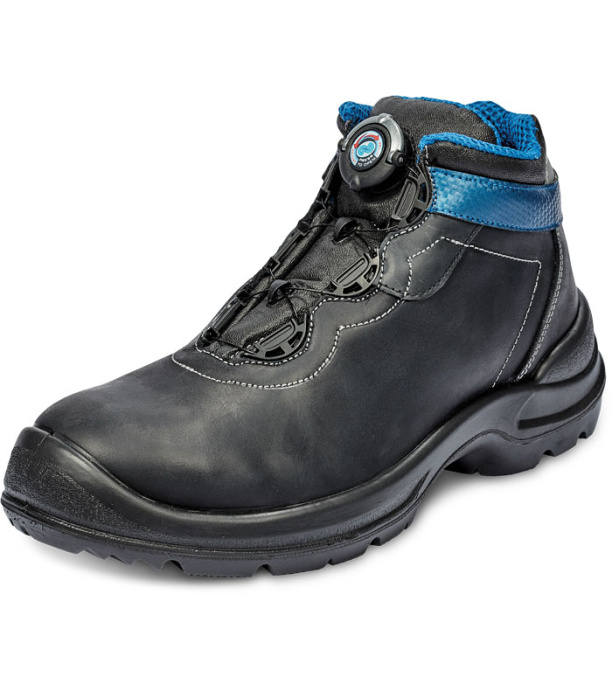 Opis: Trzewiki robocze z metalowym podnoskiem i wkładką antyprzebiciową. Podeszwa wykonana z PU/PU. Cholewka wykonana z wysokiej jakości skóry licowej. Unikalny system szybkiego zapinania za pomocą pokrętła. Normy: EN ISO 20345 (S3 SRC)