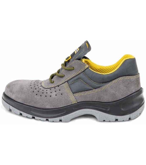 Opis: Low ESD safety shoe, which is made without any metal parts. The suede leather upper is perforated enough to increase the flow of air inside the shoe and thus its proper recirculation, which together with the „AIRNET mesh" lining provides comfort and freshness throughout the working day. The tread of the sole and midsole is made of high-quality ESD polyurethane, which ensures the shoe's comfort but at the same time robustness and maximum resistance to wear. The non-metallic puncture-resistant insole is made of multilayer polyester and can withstand pressures of up to 1,100 newtons.The model is made of highest quality certified components, in a 100% Italian manufacture of safety and work footwear with more than 40 years of experience in the field.
