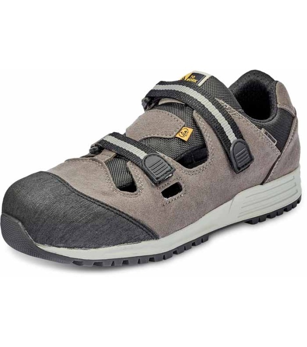 Sandały ochronne ESD z aluminiowym podnoskiem. Odporna na przebicie wkładka z Kevlaru. Gumowa podeszwa z systemem Air Tubeless System dla większego komfortu chodzenia. Cholewka z mikrofibry. Dwa paski na rzepy zapewniają idealne dopasowanie.