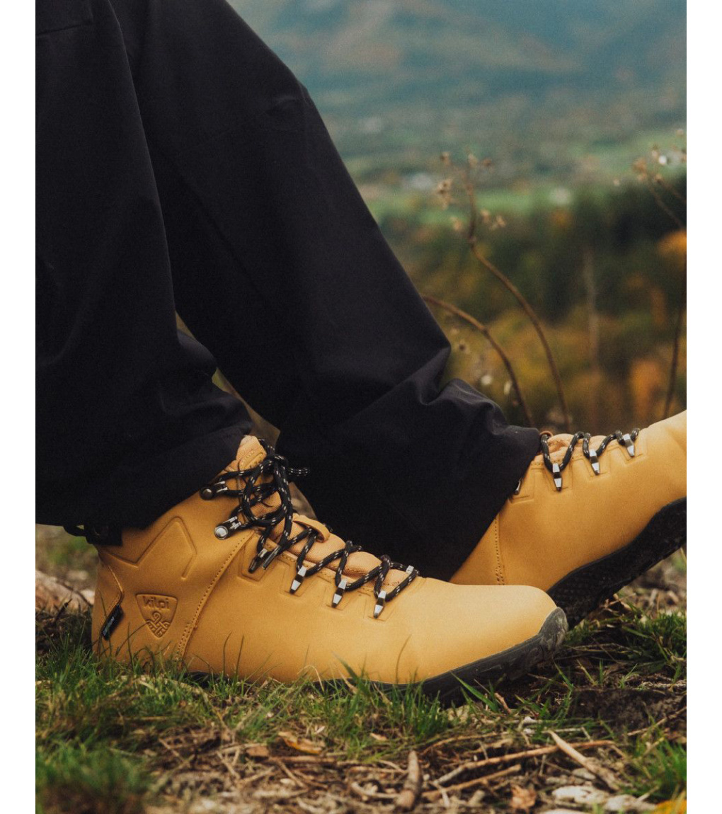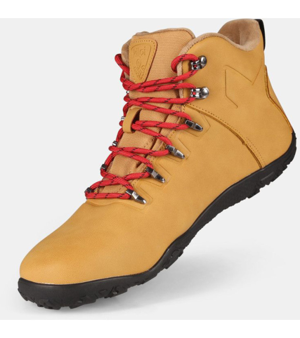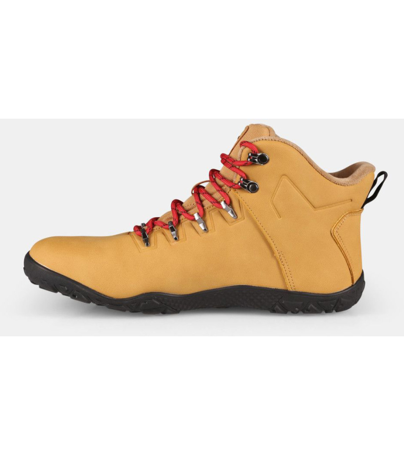 Dzięki luźniejszemu krojowi, szanującemu anatomię Twoich stóp, Twoje palce będą miały dużo miejsca. Wykonane z łatwej w pielęgnacji skóry technicznej, przypominającej prawdziwą skórę. Buty są odporne na wilgoć dzięki wewnętrznej membranie, więc możesz wyjść w nich na deszcz i wilgoć. Miękka wkładka z mikropolaru zapewni Twoim stopom ciepło nawet w chłodniejsze dni. Nylonowe sznurowadła mocno trzymają but na stopie i zapewniają stabilny krok. Dodatkowo otrzymasz parę sznurówek w kontrastowym kolorze dla stylowego wyglądu. Zapewnij swoim stopom komfort i ochronę dzięki miękkiej, amortyzującej wkładce z mikroperforacją, która pochłania wstrząsy, izoluje od zimna i zapewnia lepszą wentylację. Dzięki cienkiej, 3-milimetrowej gumowej podeszwie z wieloterenowym wzorem pokonasz lekkie wędrówki z uczuciem chodzenia boso, a gumowe ochraniacze palców ochronią Cię przed nieprzyjemnymi kopnięciami.