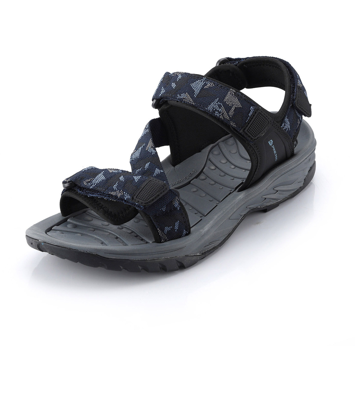 Letnie sandały męskie GERF marki ALPINE PRO można nosić zarówno w mieście, jak i na łonie natury, a nawet latem nad wodą i zawsze będą Ci doskonale służyć. Buty wykonane są z mocnego, łatwego w czyszczeniu materiału, mają wkładkę i międzypodeszwę z pianki EVA, która jest miękka i amortyzuje wstrząsy powstałe podczas ruchu. Wysokiej jakości gumowa podeszwa jest elastyczna. Buty zapinane są na trzy paski z rzepem. Perfekcyjne wykonanie, ozdobne przeszycia, nowoczesne zakończenia paska i logo tworzą razem piękny wygląd.