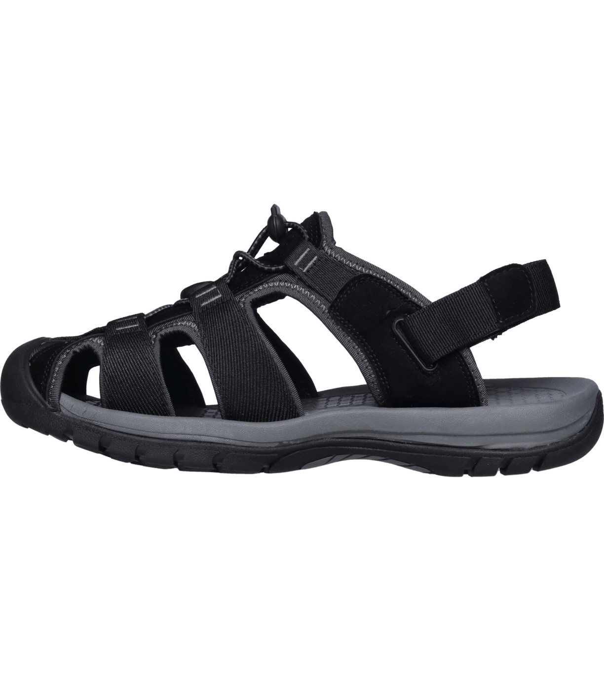 Męskie sandały Loap ORLAND to wygodne sandały zaprojektowane z myślą o niezawodnym noszeniu nawet na nierównym terenie. Mają zabudowany nosek, co zmniejsza ryzyko kontuzji palców. Cholewka to połączenie wytrzymałego poliuretanu z tkaniną, a pięta jest zabezpieczona taśmą. Wkładka z ultralekkiego Phylonu doskonale amortyzuje wstrząsy i zapewnia miękki krok, a dla jeszcze większego komfortu Phylon zastosowano również w podeszwie. Połączenie to zapewnia trwałość podeszwy i jednocześnie zapewnia przyczepność. Tylny pasek nad piętą zapinany jest na rzep, a buty wyposażone są w gumę z hamulcem na podbiciu, dzięki czemu sandały można łatwo dopasować do stopy.