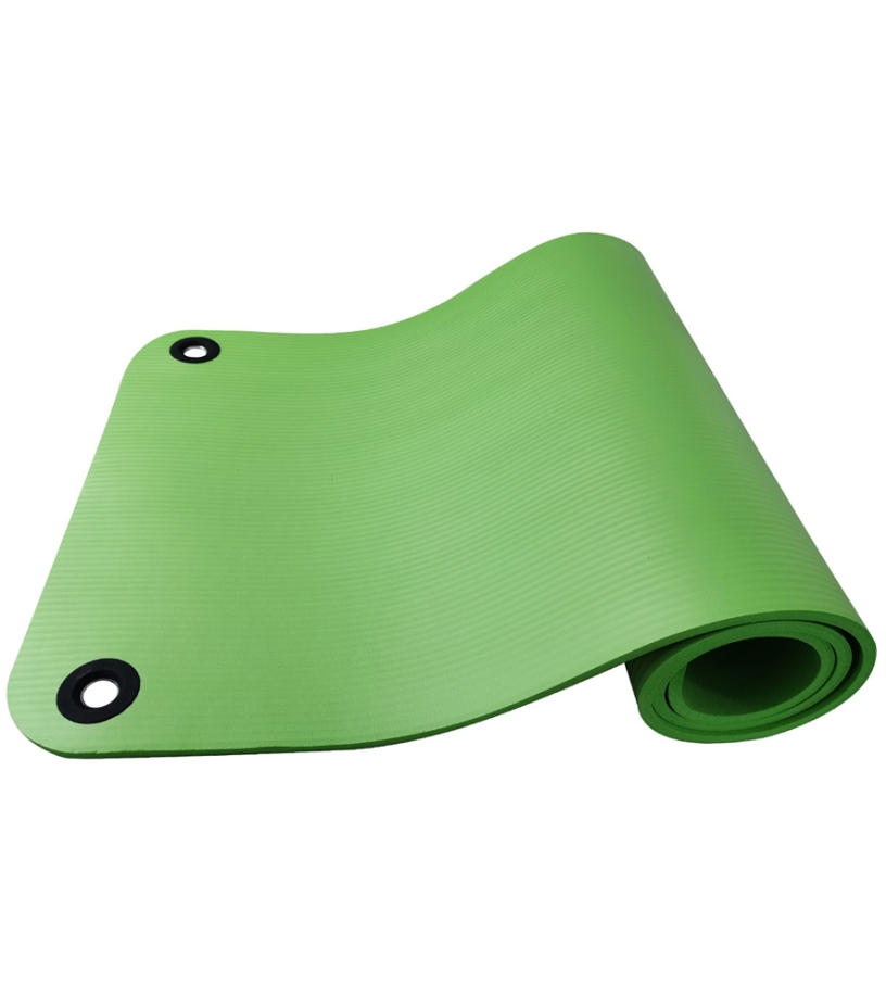 Mata do ćwiczeń z antypoślizgową powierzchnią wykonaną z miękkiej pianki NBR. Mata jest uzupełniona oczkami do zawieszenia na haczykach. Umożliwia to szybkie suszenie i oszczędność miejsca.