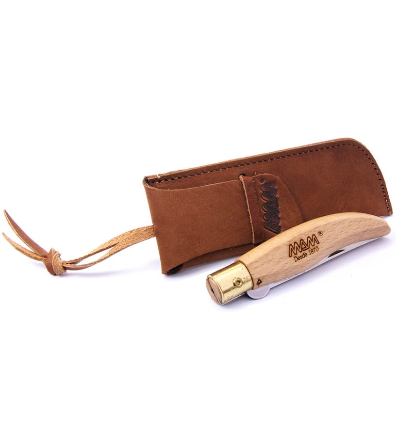 Skórzany futerał na noże składane przeznaczony jest swoim gabarytami do mniejszych modeli noży. Zawiera skórzany pasek do zawieszenia.