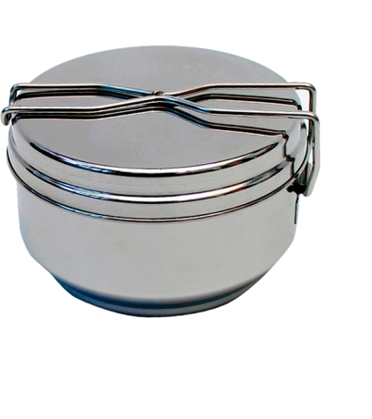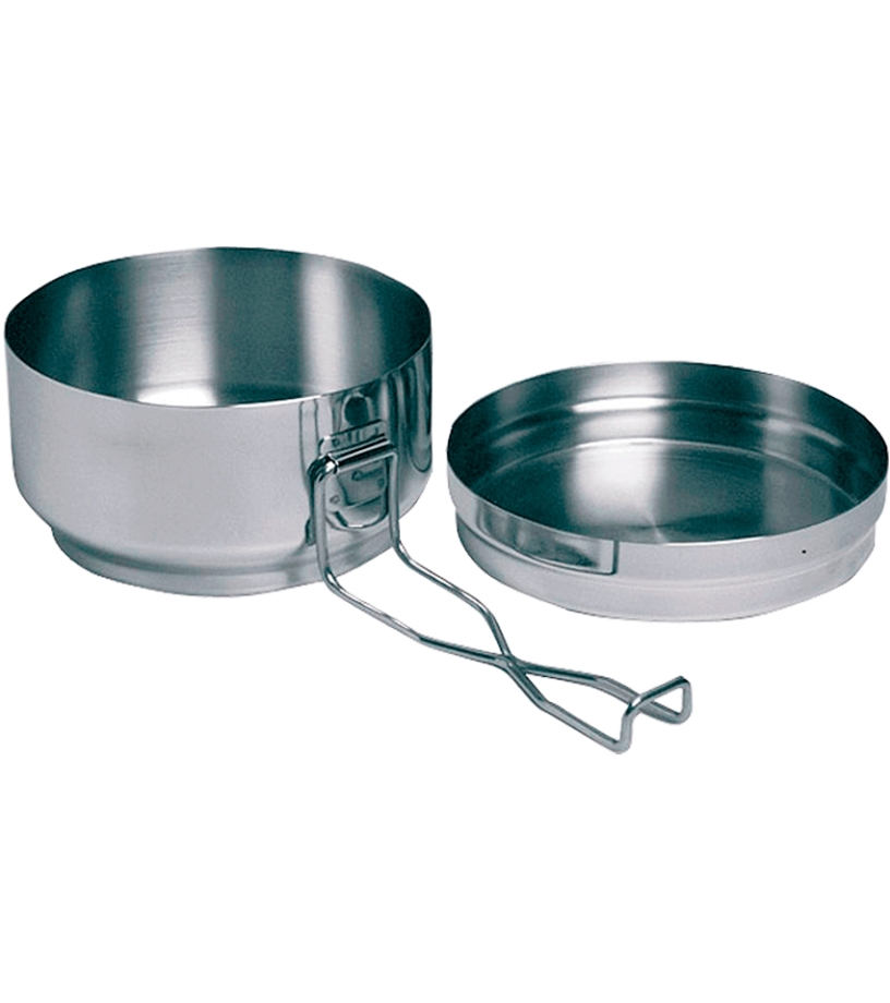 Klasyczna menażka ze stali nierdzewnej odpowiednia dla każdego obozowicza. Miska 1,25 l, pokrywka 0,3 l. Stal nierdzewna jest bardziej odpowiednia do styku z żywnością niż aluminium.