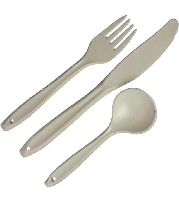 Bardzo lekkie trzyczęściowe sztućce turystyczne. Krótkotrwała odporność na temperaturę do 120°C. Nadaje się do naczyń teflonowych.