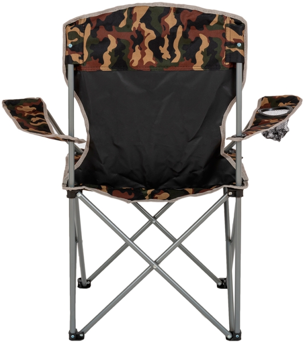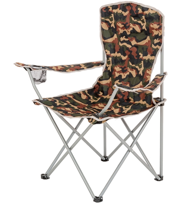 Składane krzesło kempingowe z podłokietnikami do wygodnego siedzenia w dowolnym miejscu na łonie natury. Solidna konstrukcja.