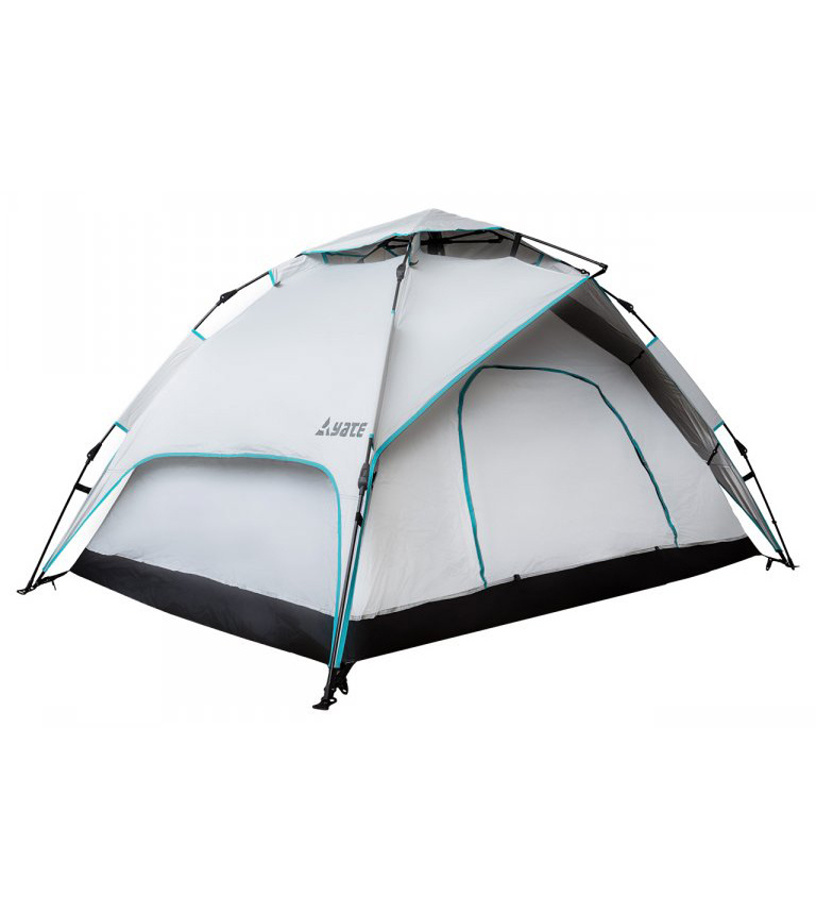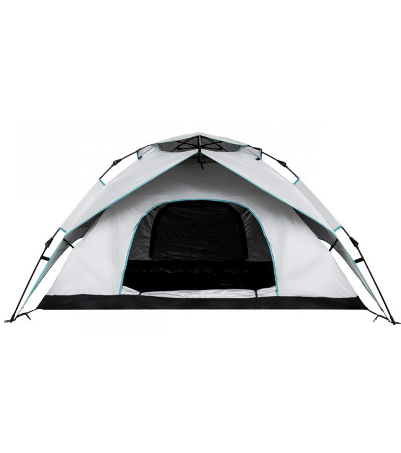 Namiot dwuosobowy, który rozkłada się w mgnieniu oka. Wystarczy rozłożyć i gotowe! Namiot jest przeznaczony na letnie kempingi, dlatego ma jasny kolor, który odbija promienie słoneczne, a namiot wewnętrzny ma duże, siatkowe okna po bokach, które zapewniają dobrą wentylację.