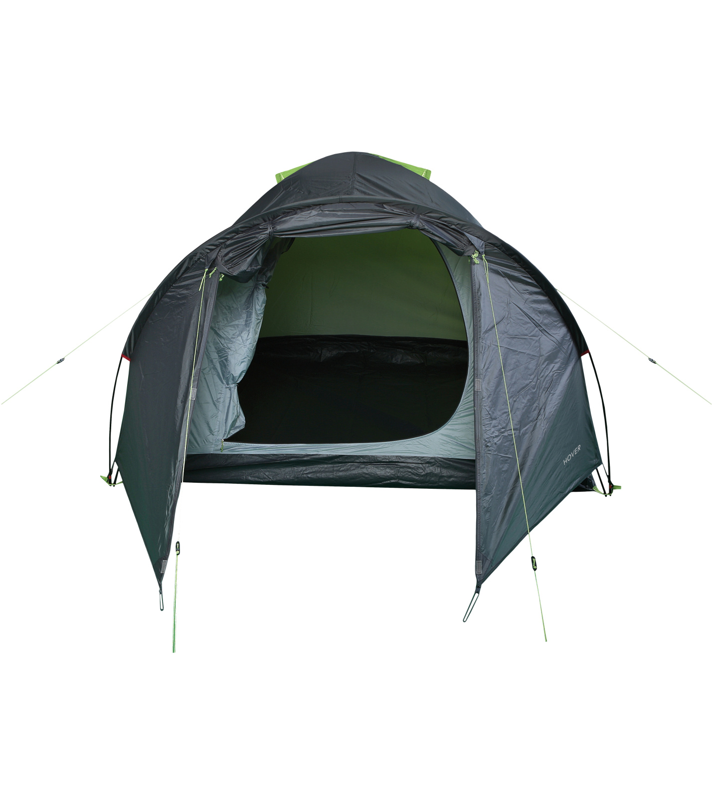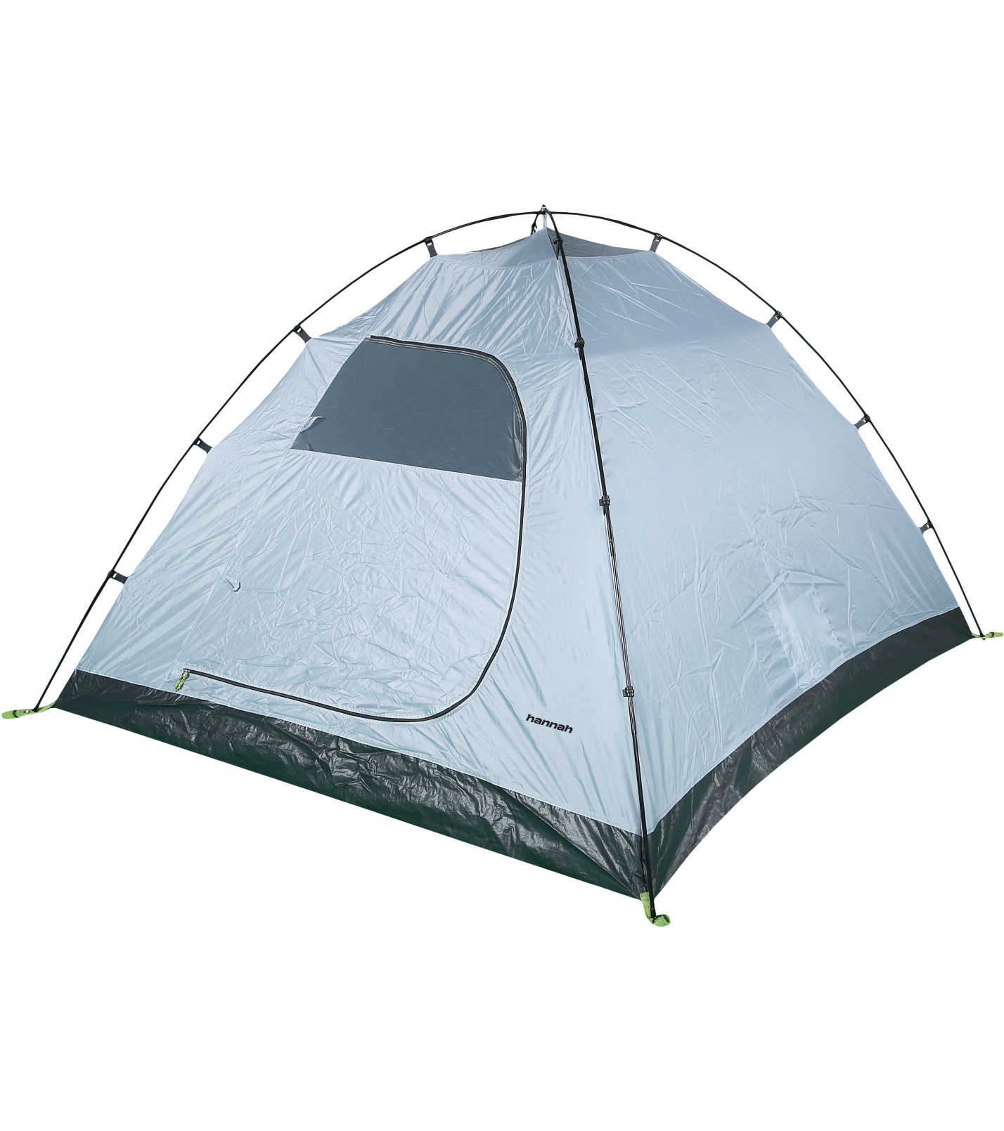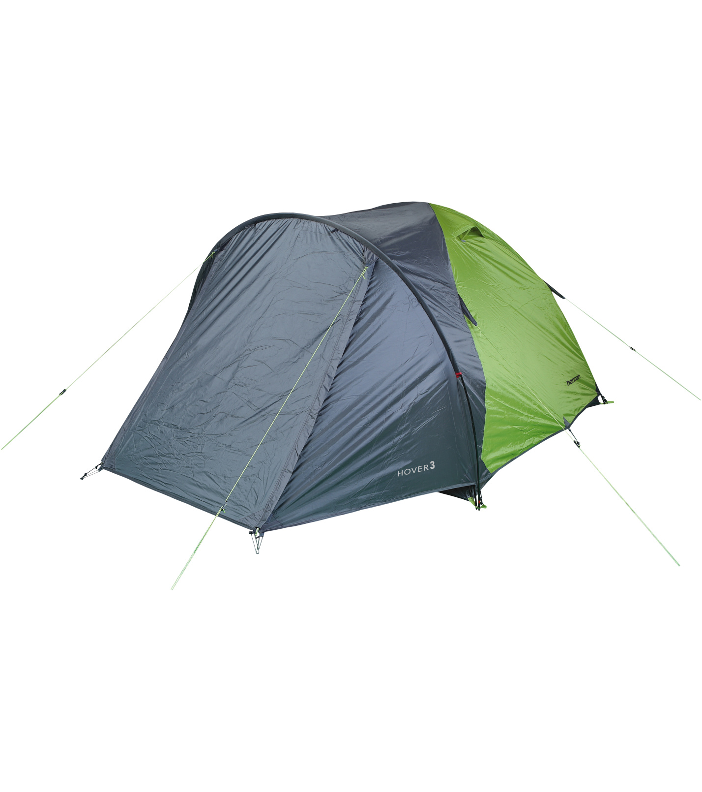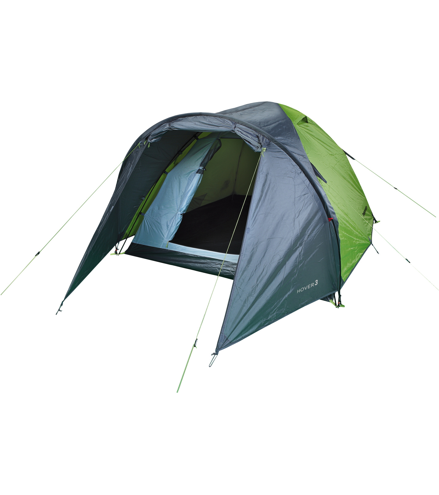 Hannah HOVER 3 przestronny, ale łatwy w spakowaniu namiot 3-osobowy, 1 wejście, konstrukcja wewnętrzna, 1 sypialnia, przedsionek z wejściem od frontu, 3 kijki, 2 otwory wentylacyjne, klasyczne mocowanie, mocowanie tropika za pomocą haczyków, drzwi z częściową wentylacją, 2 kieszenie, półka sufitowa, śledzie metalowe.