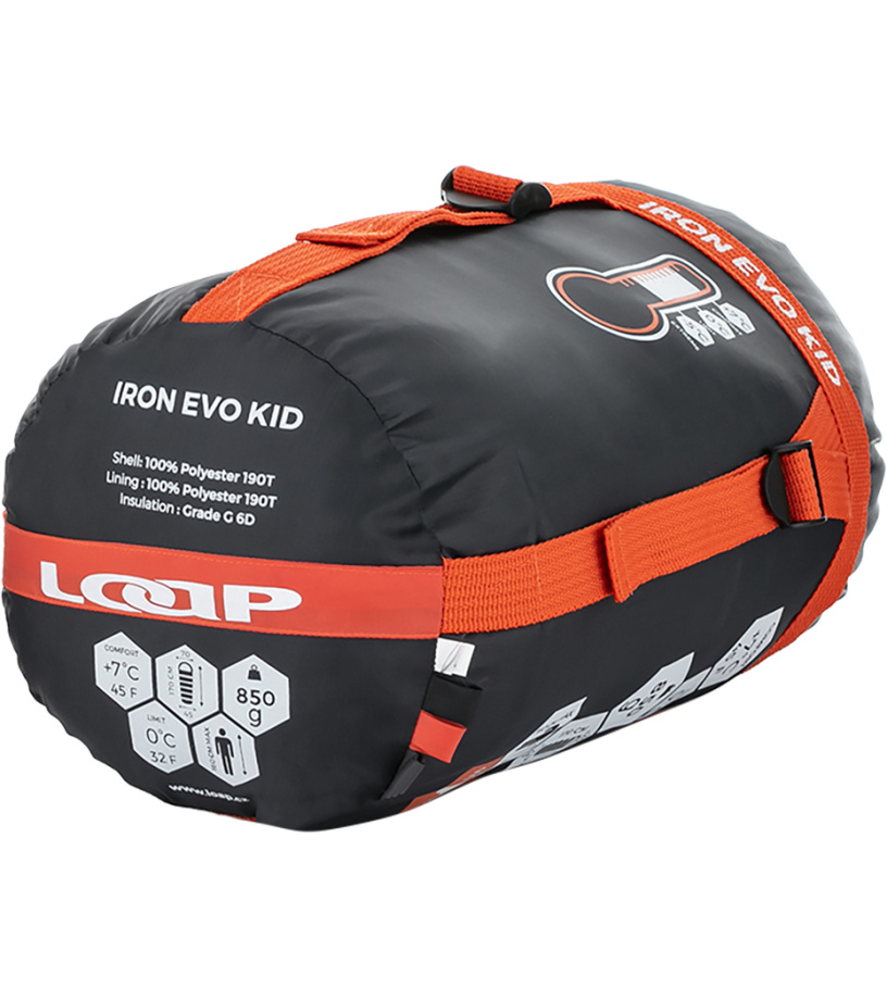 Śpiwór dziecięcy typu mumia Loap IRON EVO KID świetnie sprawdzi się nie tylko na obozach letnich. W dolnej części ma polarowe ocieplenie nóg, które szybko się nagrzewa podczas chłodniejszych nocy. Ma jednowarstwową konstrukcję z kapturem, który można ściągnąć, ma też wewnętrzny ściągany kołnierz, który dobrze dopasowuje się do kształtu ciała i zapobiega ucieczce ciepła. Śpiwór jest łatwy w utrzymaniu i szybko schnie. Wewnątrz znajdziesz jedną kieszeń na dokumenty lub pieniądze.