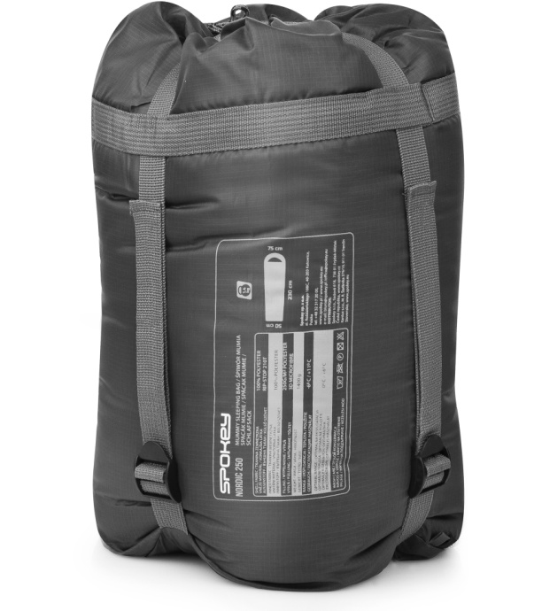 - jest pakowany w worek kompresyjny, co pomaga zmniejszyć objętość śpiwora i jednocześnie chroni przed wodą,