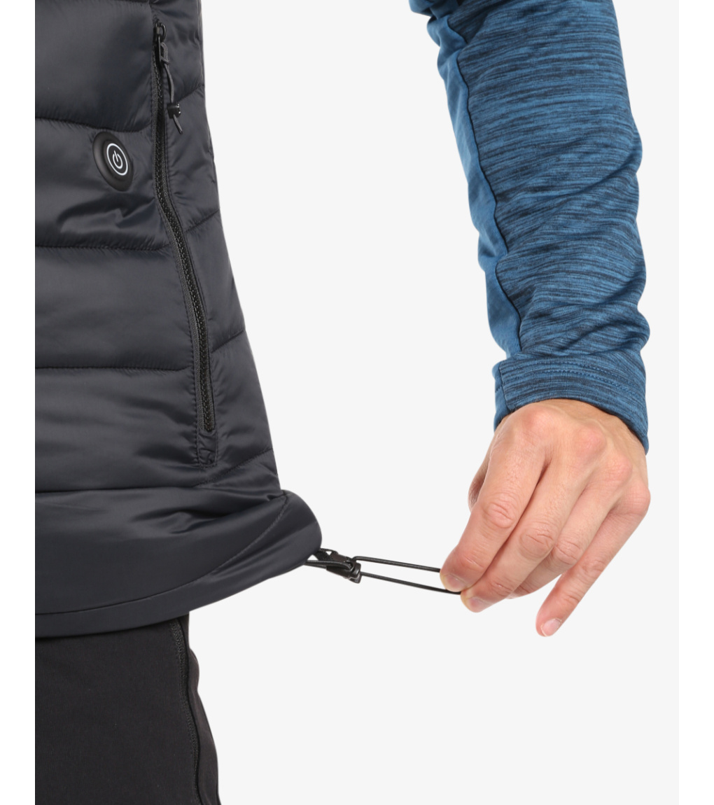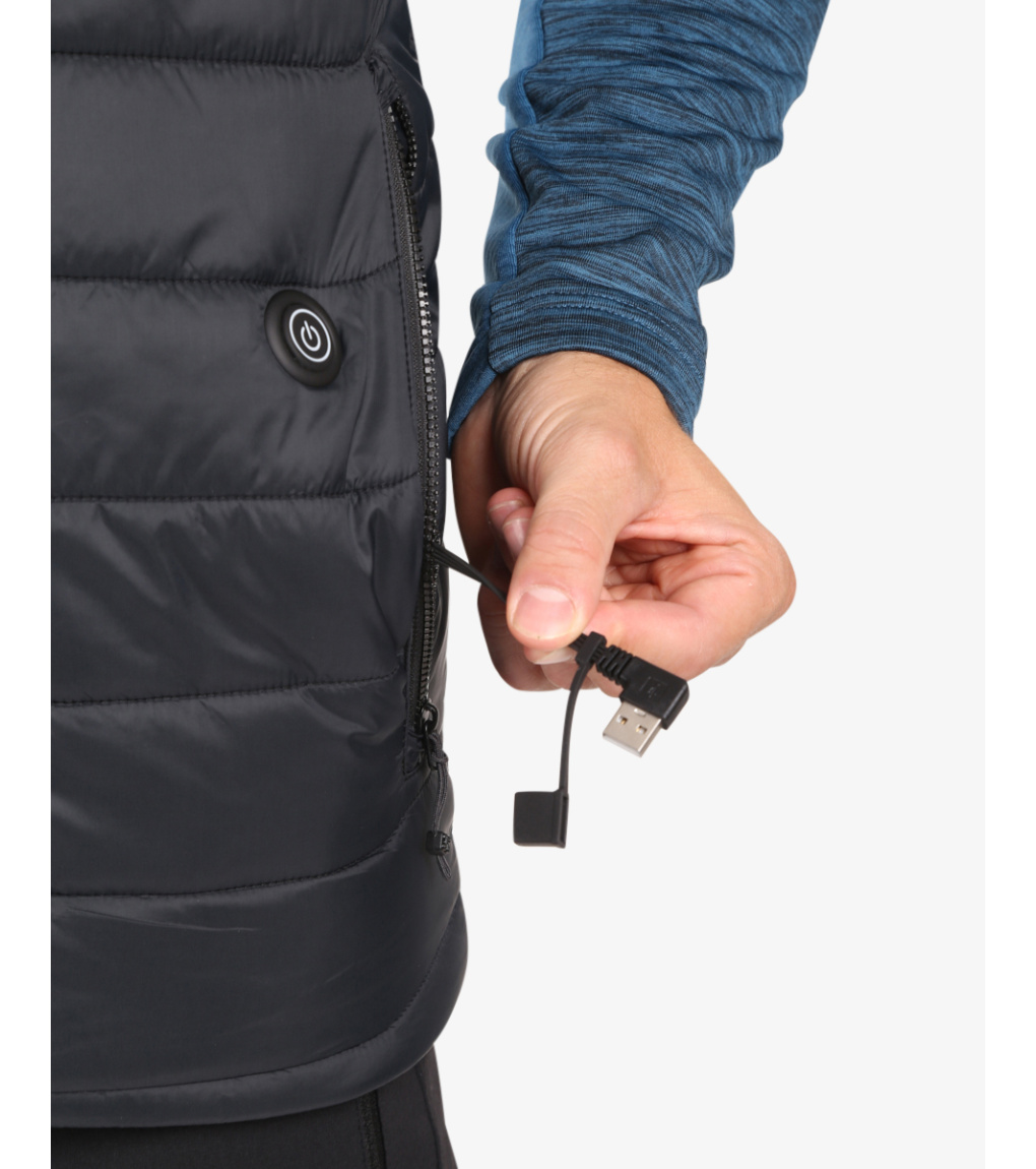 Ocieplana kamizelka ze zintegrowanym ogrzewaniem to HEATEO-M. Jest to doskonały produkt dla tych, którzy zimą spędzają wolny czas lub czas pracy na świeżym powietrzu i chcą zachować ciepło nawet podczas największych mrozów. Polecamy ją jako warstwę wierzchnią lub warstwę środkową podczas jazdy na nartach lub pieszych wędrówkach, pod kurtkę typu hardshell. Panele grzewcze znajdują się na klatce piersiowej i plecach, steruje się nimi za pomocą przycisku obok kieszeni, po podłączeniu power banku o mocy co najmniej 10 000 mAh. Oferuje trzy poziomy temperatury. Miękkie, ciepłe wypełnienie syntetyczne, w połączeniu z panelami grzewczymi, gwarantuje ciepło i wygodę. Wysoki kołnierz, dwie kieszenie zapinane na zamek i elastyczny dolny brzeg sprawiają, że ta kamizelka jest pełna praktycznych detali, które z pewnością docenisz. Srebrna odblaskowa podszewka odbija ciepło ciała i zapewnia jeszcze większe ciepło. Ta ocieplana kamizelka to nie tylko zwykła część garderoby, to Twoja tajna broń na zimno, dzięki której możesz cieszyć się każdą minutą na świeżym powietrzu. Dzięki kamizelce Kilpi HEATEO-M nie tylko przetrwasz zimę, ale pokochasz ją.