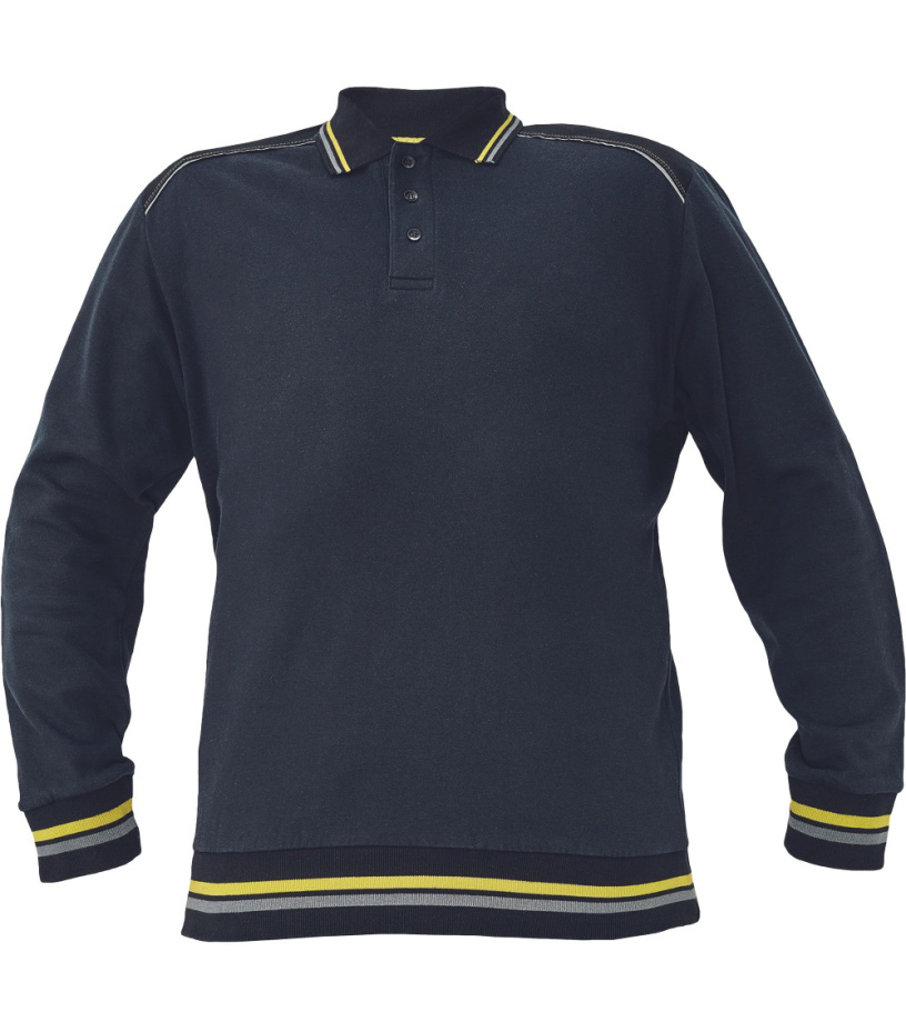 Opis: męska bluza polo wykonana z mieszanki bawełny, poliestru i frotte